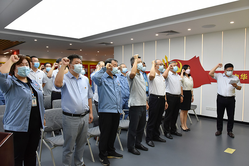 隨后,全體黨員干部在鮮紅的黨旗下,高舉右手,莊嚴宣誓,以鏗鏘有力入黨誓詞喚醒作為共產(chǎn)黨員的使命與責任,提醒黨員干部時刻牢記初心使命、永葆清廉本色。