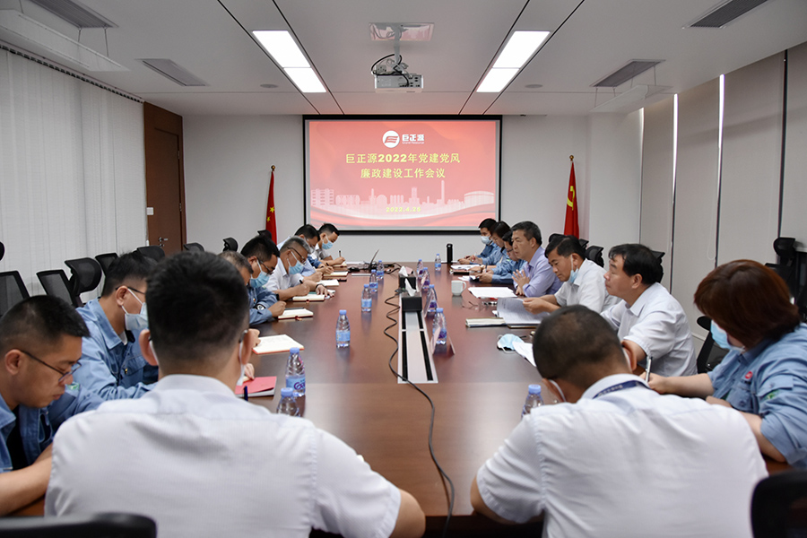 4月25日,巨正源召開2022年黨建黨風廉政建設工作會議,總結2021年工作,部署2022年任務。公司黨委書記、董事長石新琦出席會議并講話,黨委副書記、紀委書記唐泉涌主持會議。