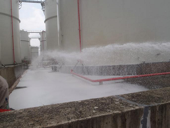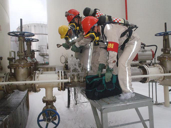 噴灑泡沫覆蓋泄漏物料 堵漏組帶防爆工具和堵漏器到達(dá)泄漏點(diǎn)
