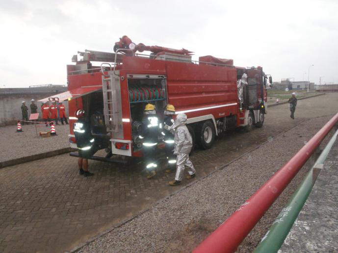應(yīng)急基地專業(yè)堵漏隊(duì)對現(xiàn)場氣體檢測和實(shí)施堵漏