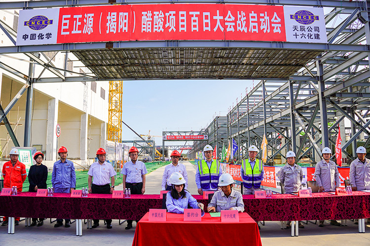 9月13日,巨正源召開揭陽新材料基地醋酸項目“百日大會戰”啟動會。巨正源黨委書記、董事長何文忠,副董事長、總裁王立貴,黨委副書記、董事、紀委書記兼揭陽公司董事長唐泉涌,中國天辰副總經理吉利,十六化建副總經理周良緒,興油工程總監理工程師閆春光等參加活動。