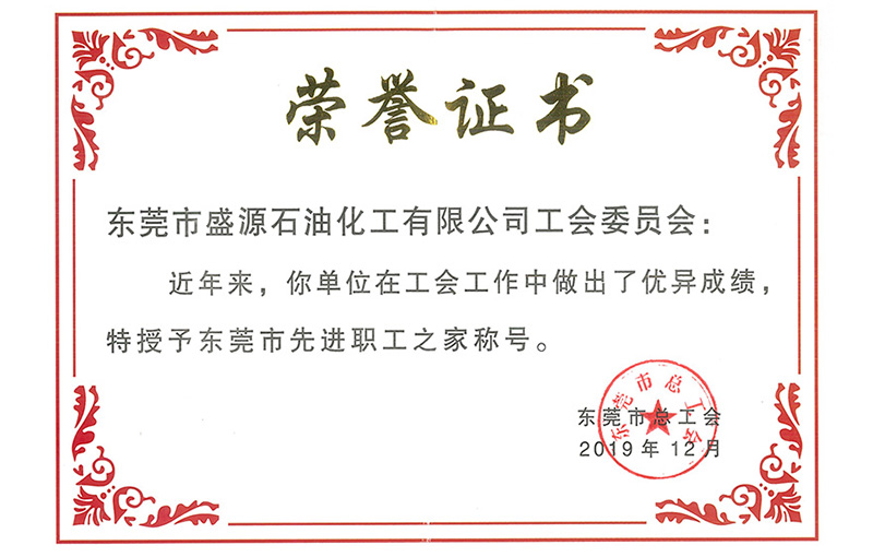 日前,在由東莞市總工會發(fā)起的“職工之家”的評比活動中,盛源石化工會榮獲“東莞市先進(jìn)職工之家”稱號。